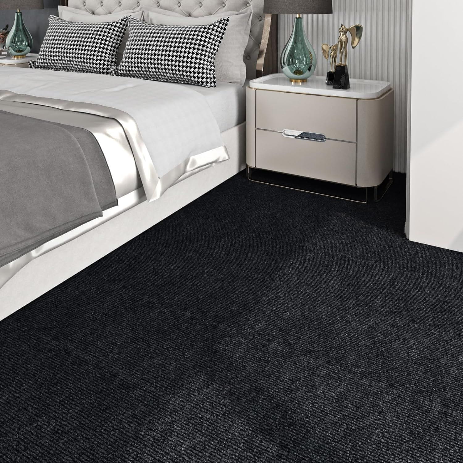 Nikcorp Samolepilne tekstilne plošče preproga, črna, 30x30 cm, 15 kosov, komplet 1,35 m2, protizdrsna talna obloga, adsorpcijska podlaga