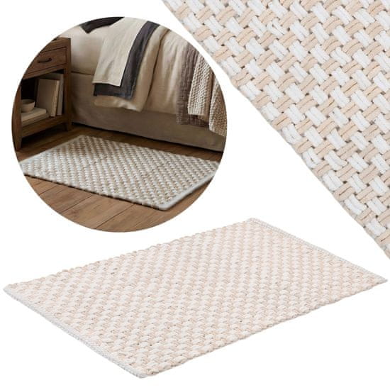 sarcia.eu Bela in kremasta barva preproga za spalnico, pletena, 50x80 cm - VPOJNA, plišasta mikrovlakna, VISOKA gramatura 50x80cm