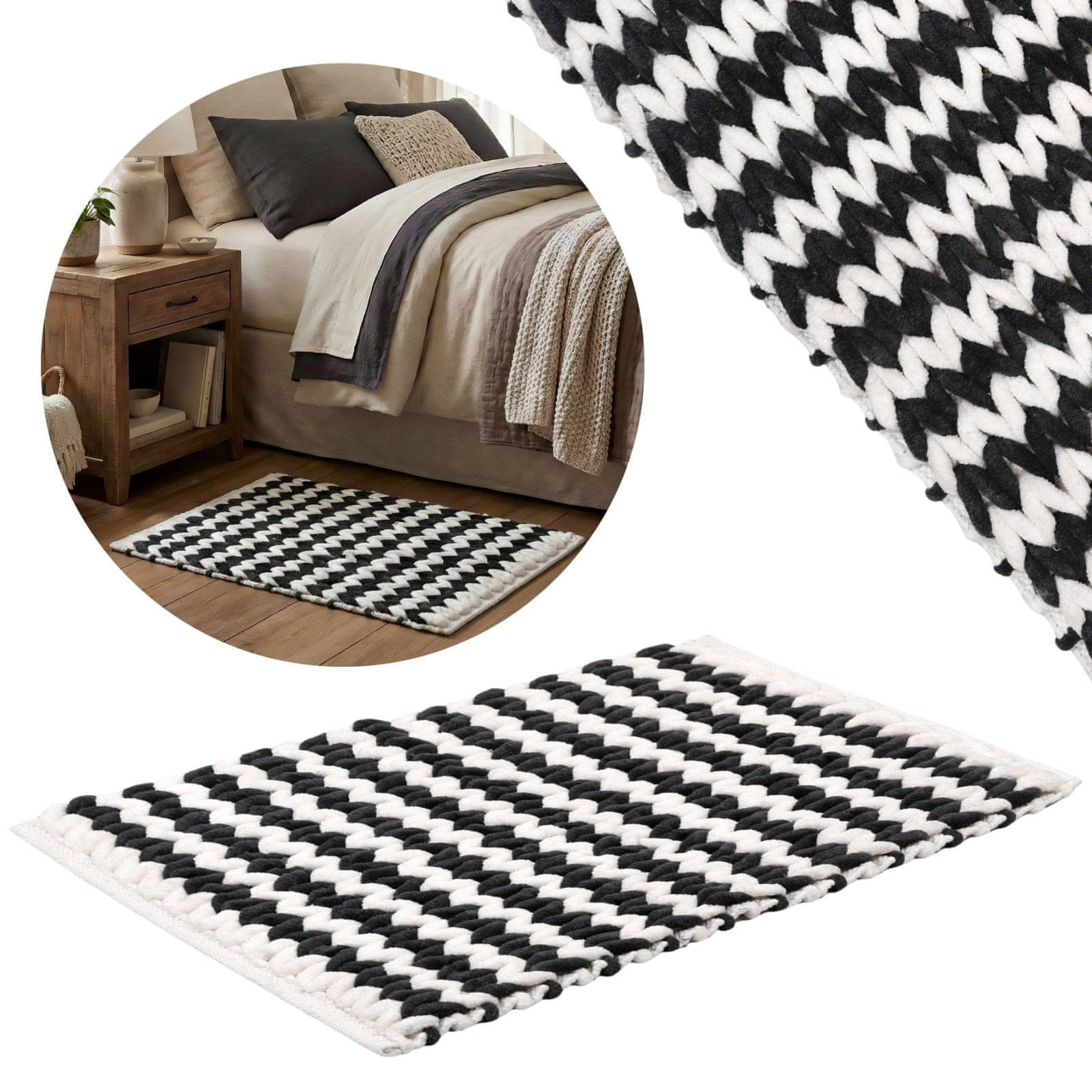 sarcia.eu Siva in bela preproga za spalnico, pletena, 50x80 cm - VPOJNA, plišasta mikrovlakna, VISOKA gramatura 50x80cm