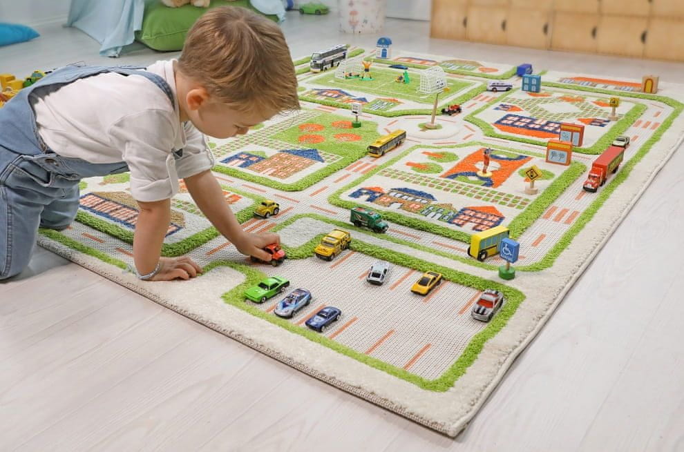 Tridimenzionalna 3D preproga za otroke City Streets City of Play zelena 3D preproga za otroke v velikosti 80×150 cm. Odlikujejo jo posebej znižane ulice, parkirišča, kjer se lahko otrok vozi z avtomobilčki, se uči prometnih pravil ali parkira. Najpomembnejše lastnosti preproge: Velika izbira velikosti preprog – od 80×150 cm, zaradi česar se preproga prilega praktično vsakemu prostoru, do velikosti 160×200 cm, ki bo prekrila velik del tal v otroški sobi in zagotovila velik prostor za igro. Sniženo – aplikacije na preprogi dajejo igri na preprogi občutek resničnosti in tridimenzionalnosti. Kombinacija neverjetnega prostora za igro, še posebej za otroke, z odlično kakovostjo preproge. Preproge so debele in goste – višina vlaken 12 mm, gostota 2750 g/m2. Proizvedeno v Turčiji pri IVI Carpets. Preproge so izdelane iz 100 % polipropilena, visokokakovostnega volni podobnega materiala z lastnostmi volne, vendar nealergenskega in lažjega za čiščenje. Ustreza evropskim standardom EN-71–1–2–3. Preproge so antialergijske, antistatične, odporne na madeže in izdelane z nestrupenimi barvili. 3D preproge je mogoče normalno sesati in po potrebi oprati. Otroške preproge turškega podjetja IVI Carpets izstopajo od drugih preprog s posebej znižanimi ulicami, ulicami, izrezanimi na preprogi, ki ustvarjajo občutek resničnosti in tridimenzionalnosti, zahvaljujoč tej rešitvi se avtomobilčki popolnoma prilegajo in ne padejo z označenih poti, kar dodatno poveča privlačnost igre za otroke. Prostorske otroške preproge je ustvarila oblikovalka, ki se je odločila, da bo svoje otroke odtrgala od vseprisotnih računalnikov in pametnih telefonov ter jim zagotovila enako privlačen prostor za igro, kar je bilo sodeč po toplem sprejemu po vsem svetu 100-odstotno uspešno. Preproge so čudovit prostor za otroke same, pa tudi za igro otrok skupaj s starši. Za razliko od drugih preprog s ulicami so 3D preproge kombinacija prostora, ustvarjenega za igro otrok, in kakovostne preproge, ki jo v Turčiji proizvaja IVI Carpets. Preproge so debele in goste (višina vlaken 12 mm, gostota 2750 g/m2) ter izjemno privlačne barve. Zahvaljujoč tej zasnovi preproge ne le ustvarjajo edinstven prostor za igro otrok, temveč izpolnjujejo tudi vse funkcije tradicionalne preproge, so videti lepo v otroški sobi in zagotavljajo toplino na tleh. Kljub izrezanim spuščenim aplikacijam je preproge mogoče normalno sesati in po potrebi oprati. Preproge so izdelane iz 100 % polipropilena, visokokakovostnega volni podobnega materiala z lastnostmi volne, vendar nealergenega in lažjega za čiščenje, namerno izbranega zaradi svojih higienskih lastnosti. Izdelki so antialergični, antistatični, odporni na madeže in izdelani z nestrupenimi barvili. Varni za uporabo otrok. Ustrezajo evropskim standardom EN-71–1–2–3. Preproga Miasto Zabaw v zeleni barvi je na voljo tudi v velikostih: 80 × 100 cm. Cena 399 PLN 100 × 150 cm. Cena 499 PLN 134 × 180 cm. Cena 799 PLN 160 × 230 cm. Cena 999 PLN Proizvajalec: IVI Carpets Država proizvodnje: Turčija Material: polipropilen Gostota: 2750 g / m2 Višina: 12 mm Osnovni material: Juta Kakovost in varnost: standardi EN-71–1–2–3. Preproga se prodaja brez dodatkov, vidnih na sliki.
