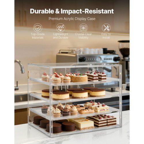 VEVOR Pekarna vitrina 4-nadstropna 570x455x405 mm prozorna