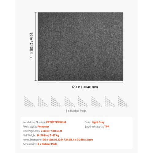 VEVOR Podloga za preprogo 244x305 cm svetlo siva