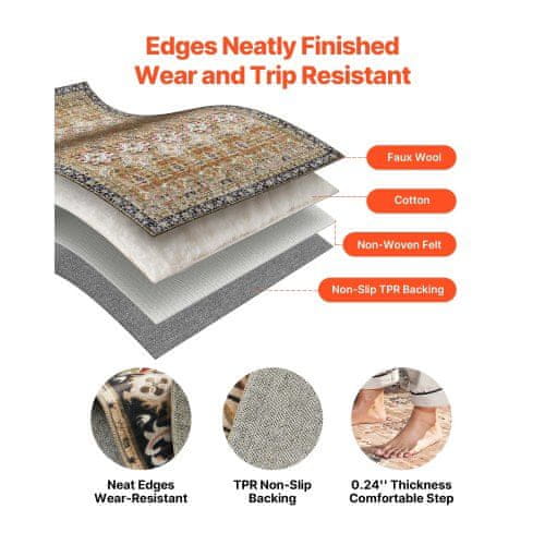 Ta velik pralni preproga ponuja popolno kombinacijo udobja vzdržljivosti in stila za vaš dom. Oblikovana z mehko žametno površino in nedrsečo podlago zagotavlja prijetno in varno okolje tako za otroke kot hišne ljubljenčke. Njegov vintage videz in vsestranska barvna paleta jo naredijo primerno za različne prostore vključno s spalnicami dnevnimi sobami otroškimi sobami in pisarnami.