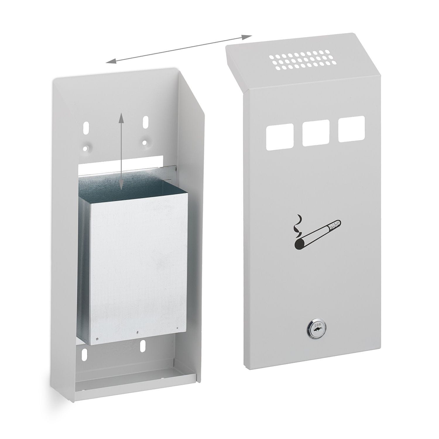 Stenski pepelnik zagotavlja čisto zunanje okolje z zmanjšanjem količine cigaretnih odpadkov pred pisarnami in javnimi prostori. Njegova oblika s ključavnico in odstranljiva posoda nudita varno in Celoten opis