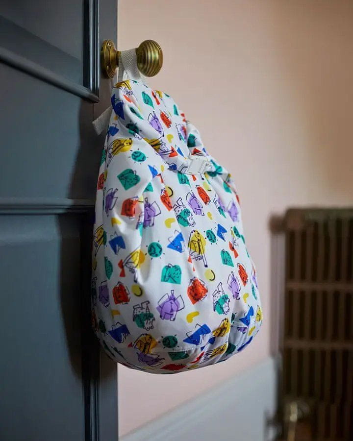 Velika neprepustna vreča za prenašanje uporabljenih plenic ali mokrih kopalk. Zaščiti druge stvari pred umazanijo na poti. Doma lahko v njej do naslednjega pranja shranite uporabljene pleničke iz blaga.