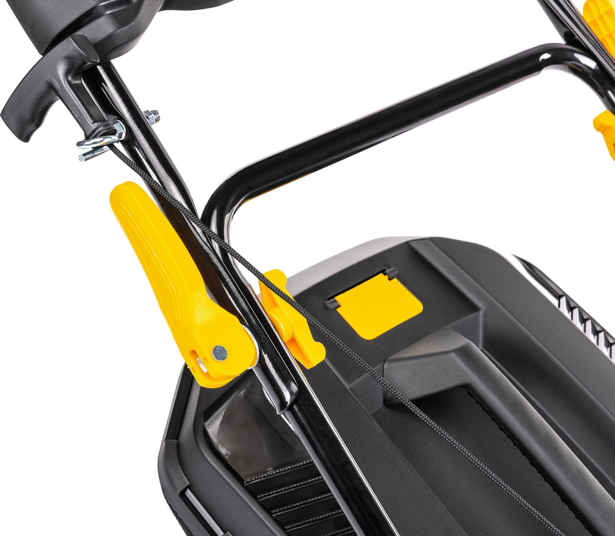 Naprava se ponaša s sistemom 4 v 1, ki omogoča različne načine košnje s širino reza 510 mm. Centralna nastavitev višine v 7 položajih omogoča natančno prilagoditev reza med 25 in 75 mm, medtem ko premijska gumirana kolesa s krogličnimi ležaji zagotavljajo gladek tek in dolgo življenjsko dobo.