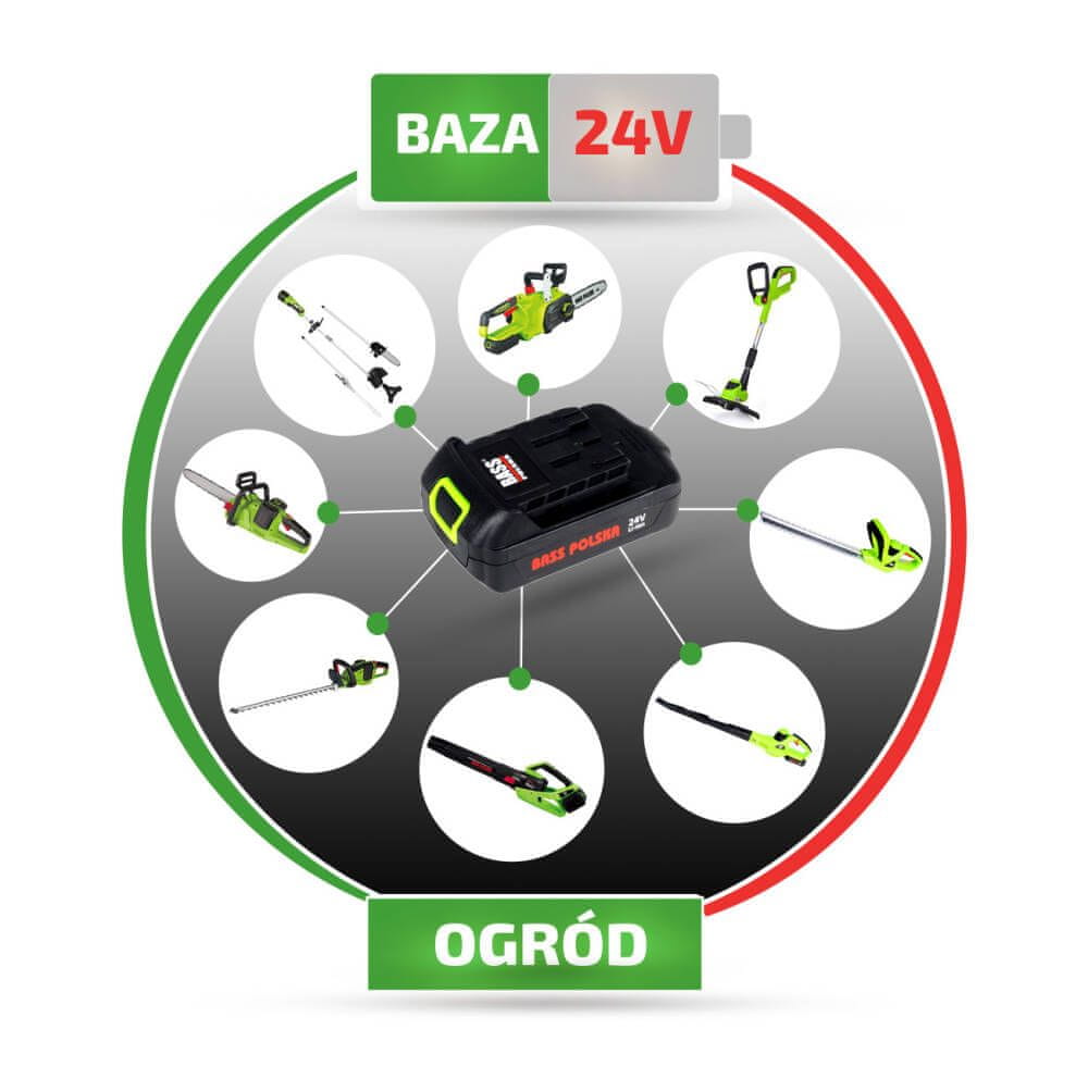 Priložena 3 Ah baterija zagotavlja dolgo delovanje brez ponovnega polnjenja. Baterija Bass Polska je lahka in nima spominskega učinka, poleg tega pa ima najvišjo energijsko gostoto in kapaciteto glede na svojo težo in prostornino. Elektronski krmilnik preprečuje prekomerno praznjenje baterije.
