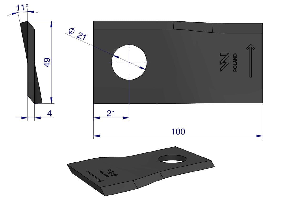 Nož, rezilo kosilnice 100X48X4X21 leva aplikacija 434977 Pottinger WARYŃSKI (prodano v 25) Celoten opis