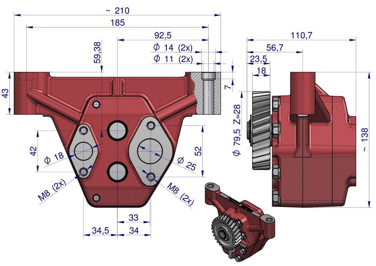 Oljna črpalka za Ursus C-385 6-valjni 86007019 Waryński Celoten opis