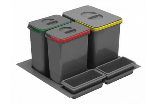 Koš za odpadke z vložkom za predal Za elemnet širine 600mm 3 posode (1×15L + 2×7L) Barva: Siva Celoten opis