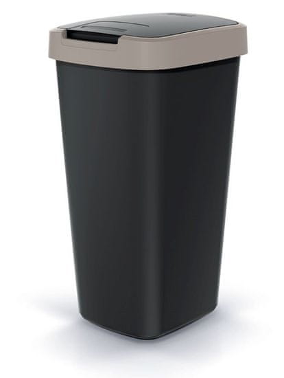 Plastični koš za odpadke s pokrovom na tečajih. Pokrov je mogoče odpreti v dveh različicah (z zatičem na sredini koša ali na strani). Snemljiv pokrov se lahko uporabi za pritrditev vreče za odpadke. 45 litrov prostornine, mere 39,4 × 29,8 × 61,2 cm. Izdelano v EU. EAN 5905197460925