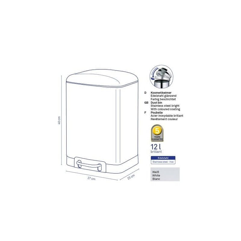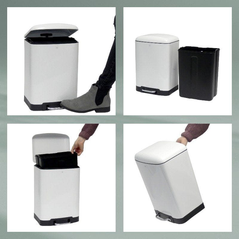 Eleganten, praktičen in higieničen – Koš za odpadke DAVINO v beli barvi je idealen pripomoček za vsak dom, pisarno ali kopalnico. Zaradi pedalnega odpiranja in silnega sistema samozapiranja zagotavlja največje udobje pri uporabi. odstranljiva notranja posoda omogoča enostavno čiščenje in ravnanje z odpadki.