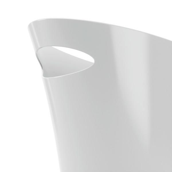 Koš za smeti Skinny je zasnovan tako, da se lahko prilega tudi v najtesnejših in ozkih prostorih. Poenostavljene oblike in ozka silhueta poskrbijo, da Skinny najde svoje mesto pod pisalno mizo, v predalu za shranjevanje ali v omari pod umivalnikom. Oblikovalci iz Umbra Studio so skrbeli za funkcionalnost, zato je Skinny mogoče uporabiti ne le kot tradicionalno smetišče, ampak tudi na primer kot posodo za pralni prašek. Zaobljeni robovi na dnu omogočajo enostavno čiščenje posode. Velik ročaj v zgornjem delu košare omogoča udobno praznjenje in tudi premikanje od kraja do kraja. Skupna višina: 34 Širina: 33 Globina: 17