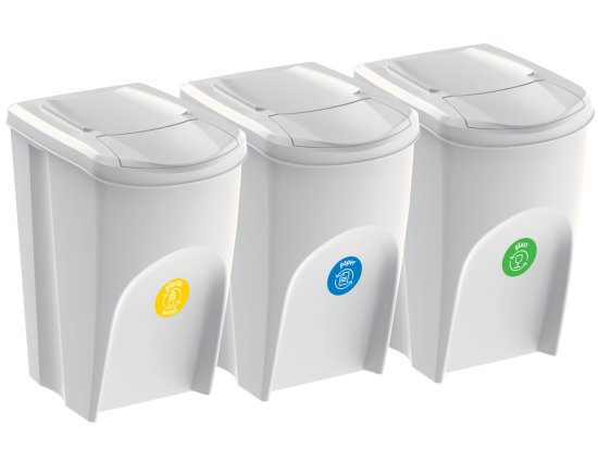 Plastični koš za sortirane odpadke (3 kosi) IKWB35S3 35 l za sortiranje odpadkov vam bo pomagal pri preprostem sortiranju odpadkov v gospodinjstvu. Gre za komplet treh kakovostnih plastičnih košar, vsaka pa ima prostornino 35 litrov. Praktičen pokrov košar zagotavlja njihovo stabilnost pri zlaganju, s čimer tudi prihranite prostor. Enostaven, sodoben dizajn in brezčasen dizajn v pepelasti barvi se bo odlično podala v vsak dom. Material za izdelavo je kakovostna plastika, enostavna za pranje, kar zagotavlja njihovo dolgo življenjsko dobo. Dimenzije ene košare so (ŠxGxV): 29,3×39,2×49,5 cm. V paketu boste našli tudi nalepke v barvah glede na vrsto sortiranih odpadkov, s katerimi ne bo več težav učinkovito sortirati odpadkov, recikliranje ni niti težko niti naporno. Smeti se pojavljajo v vsakem gospodinjstvu, zato je koš za smeti njegov sestavni del.