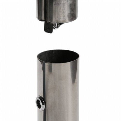 Samostoječ pepelnik izdelan iz brušenega aluminija, z dodatno zaščito pred vremenskimi vplivi, s črnim podstavkom (podstavek ima že pripravljene 3 luknje za pritrditev v tla). Celoten opis