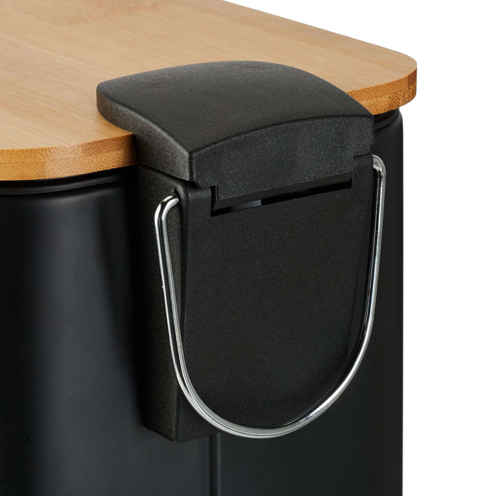 Northix Kopalniška posoda za smeti 5 l s pokrovom iz bambusa in pedalom proti zdrsu