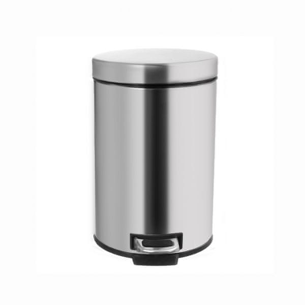 Mehki koš za odpadke iz nerjavečega jekla z nožnim pedalom. Prostornina 3 l, premer 17 cm, višina 25,5 cm. Plastična odstranljiva podloga z ročajem iz nerjavnega jekla. Kovinski ročaj na zadnji strani koša za prenašanje celotnega koša. Pakirano v škatli. EAN 8592381163976
