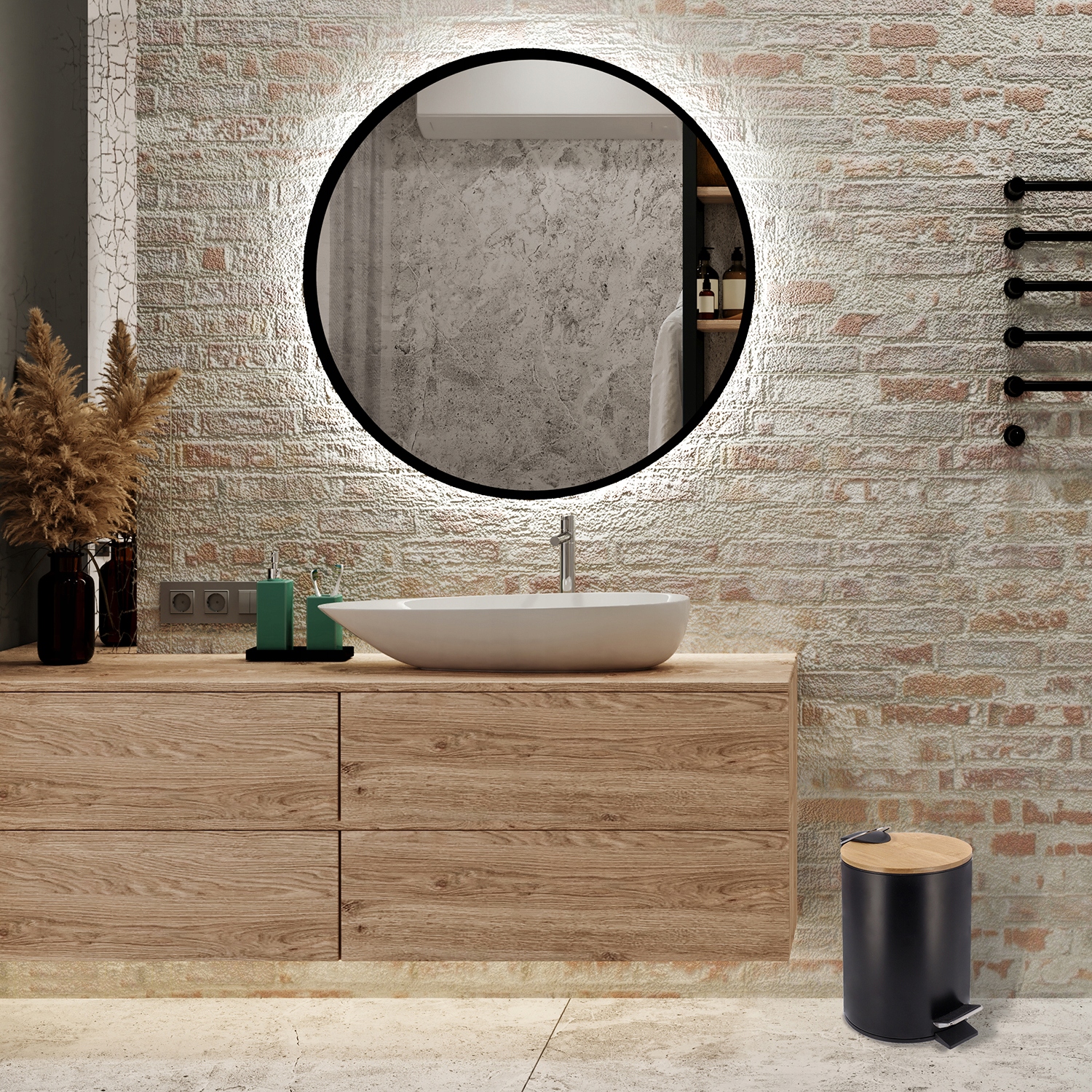 Kopalniška košara z edinstvenim dizajnom in praktično funkcionalnostjo . Mat črna površina izgleda neverjetno elegantno , lesen pokrov pa doda toplino in se prilega različnim notranjim dizajnom. Popolnoma se bo zlil z drugimi kopalniškimi elementi. Zaradi kompaktne velikosti je idealen za majhne kopalnice, kjer je vsak centimeter prostora dragocen.