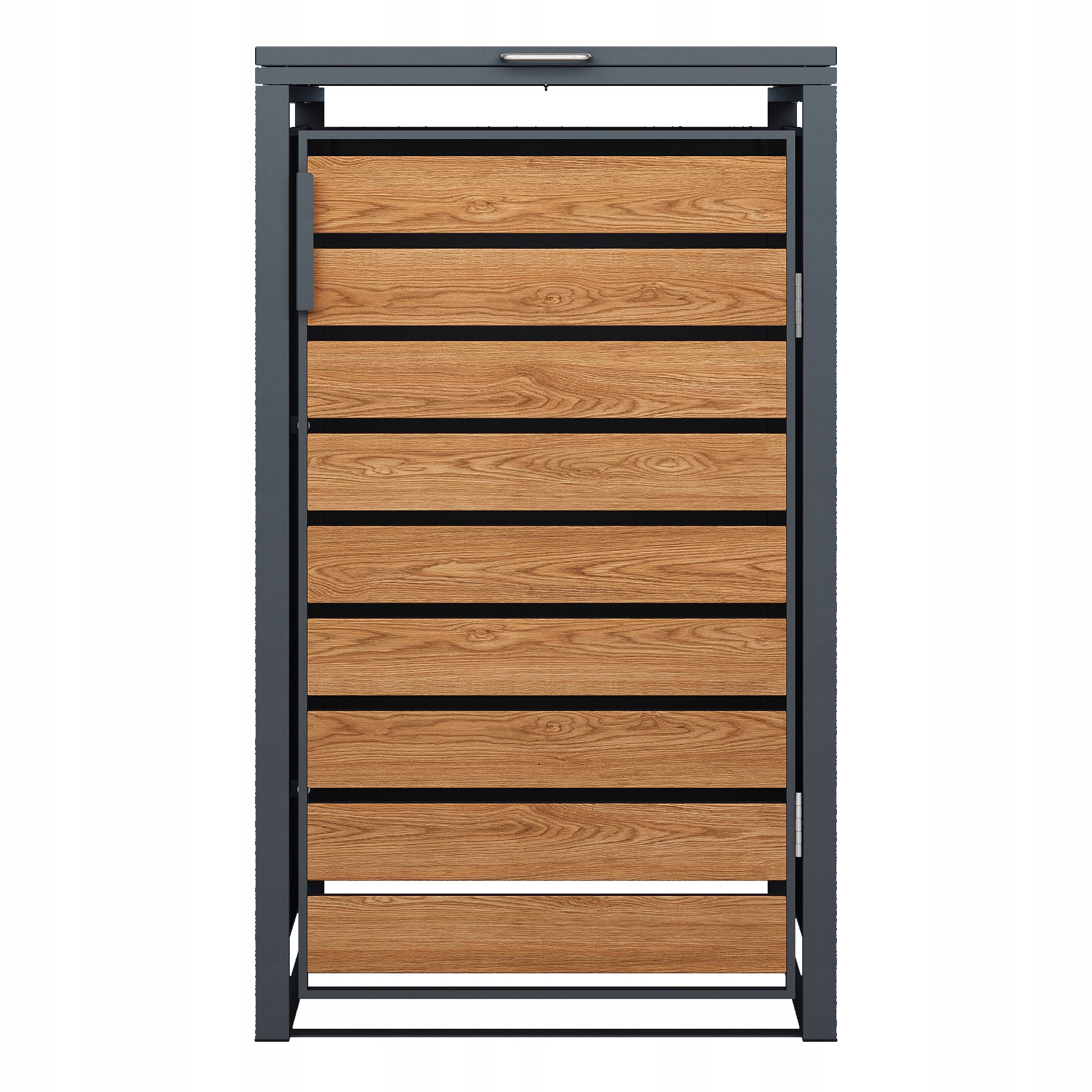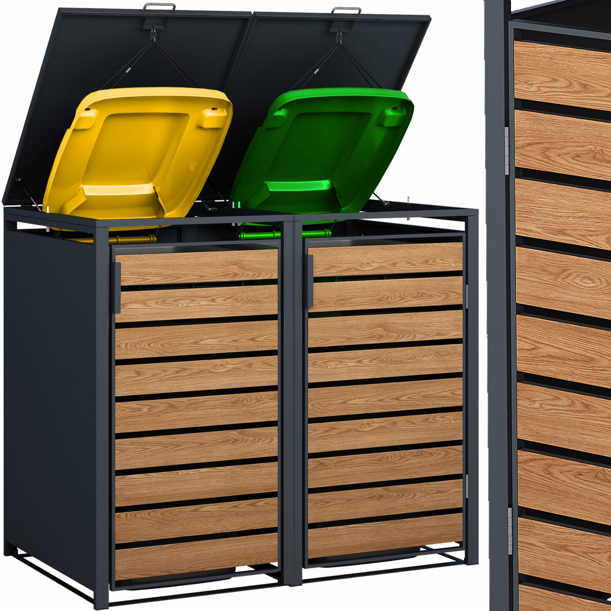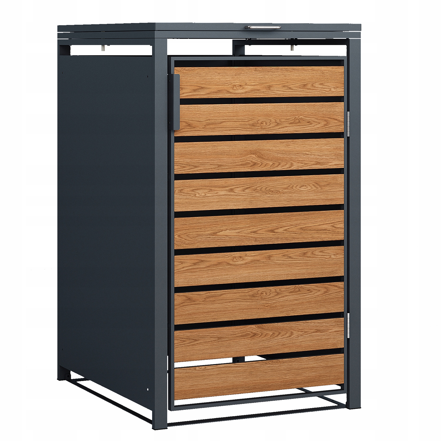Praktično in estetsko ohišje za koš za smeti, ki se lahko uporablja tudi kot shranjevanje vrtnega orodja. Zagotavlja ne le dobro zaščito zabojnikov za odpadke, temveč tudi enostaven dostop do njih. To ohišje za koš za smeti je zasnovano za dva koša za smeti z največjo prostornino 240 litrov.