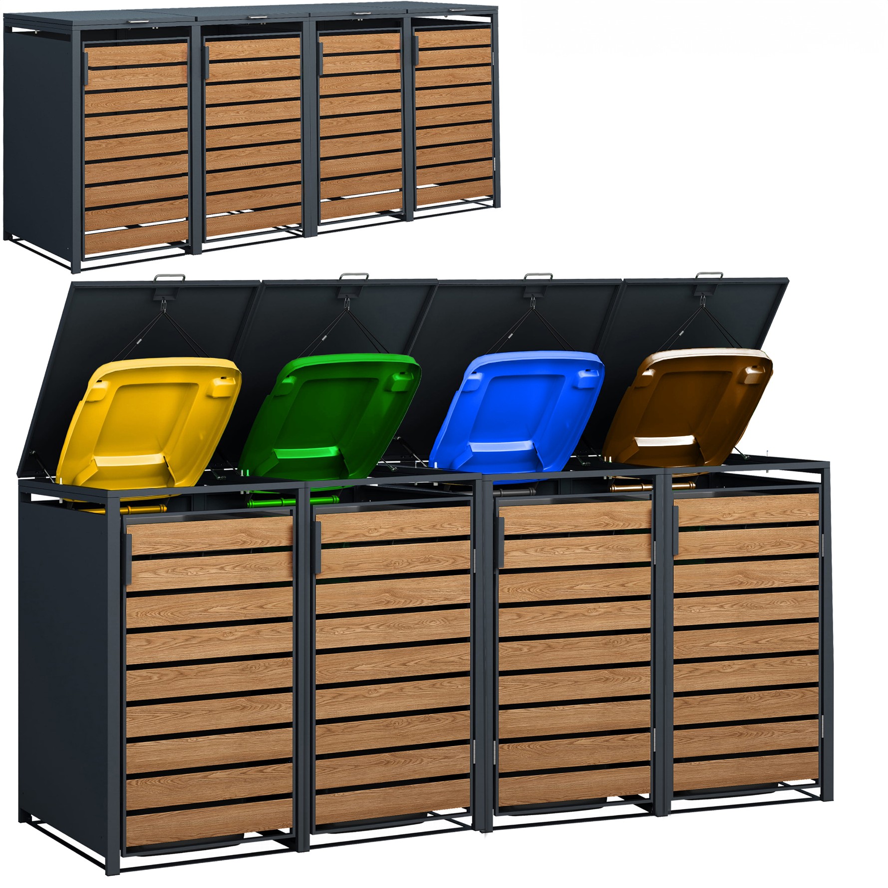 Praktično in estetsko ohišje za koš za smeti, ki se lahko uporablja tudi kot shranjevanje vrtnega orodja. Zagotavlja ne le dobro zaščito zabojnikov za odpadke, temveč tudi enostaven dostop do njih. To ohišje za koš za smeti je zasnovano za štiri koše za smeti z največjo prostornino 240 litrov.