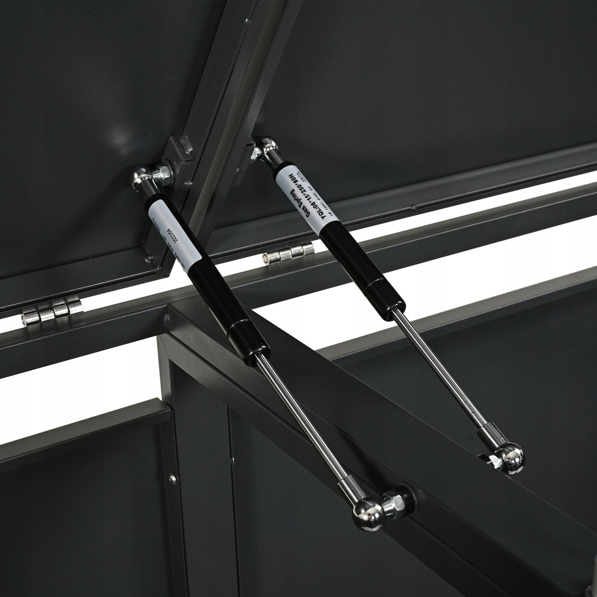 • Na zgornjo loputo je pritrjena pravilno izbrana plinska vzmet , ki podpira njeno odpiranje in jo drži navzgor pod optimalnim kotom. Za zaščito konstrukcije pri zapiranju lopute se uporabljajo posebni