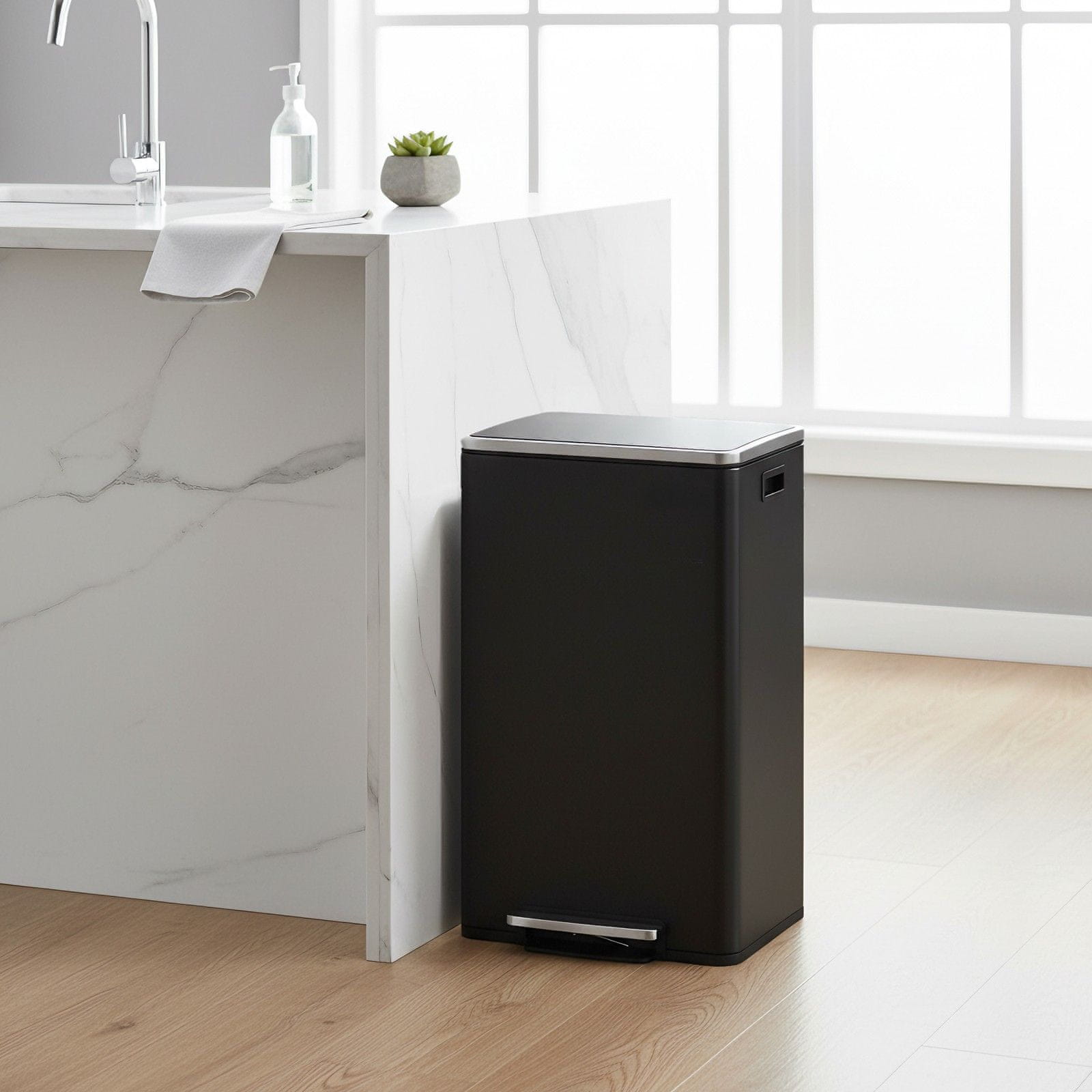 Ta smetnjak je zasnovan za praktično in higienično upravljanje gospodinjskih ali pisarniških odpadkov. Njegova robustna konstrukcija in premišljene funkcije olajšajo vsakodnevno odlaganje odpadkov. Odstranljiv notranji vedro in pokrov z mehkim zapiranjem zagotavljata enostavno uporabo in vzdrževanje.