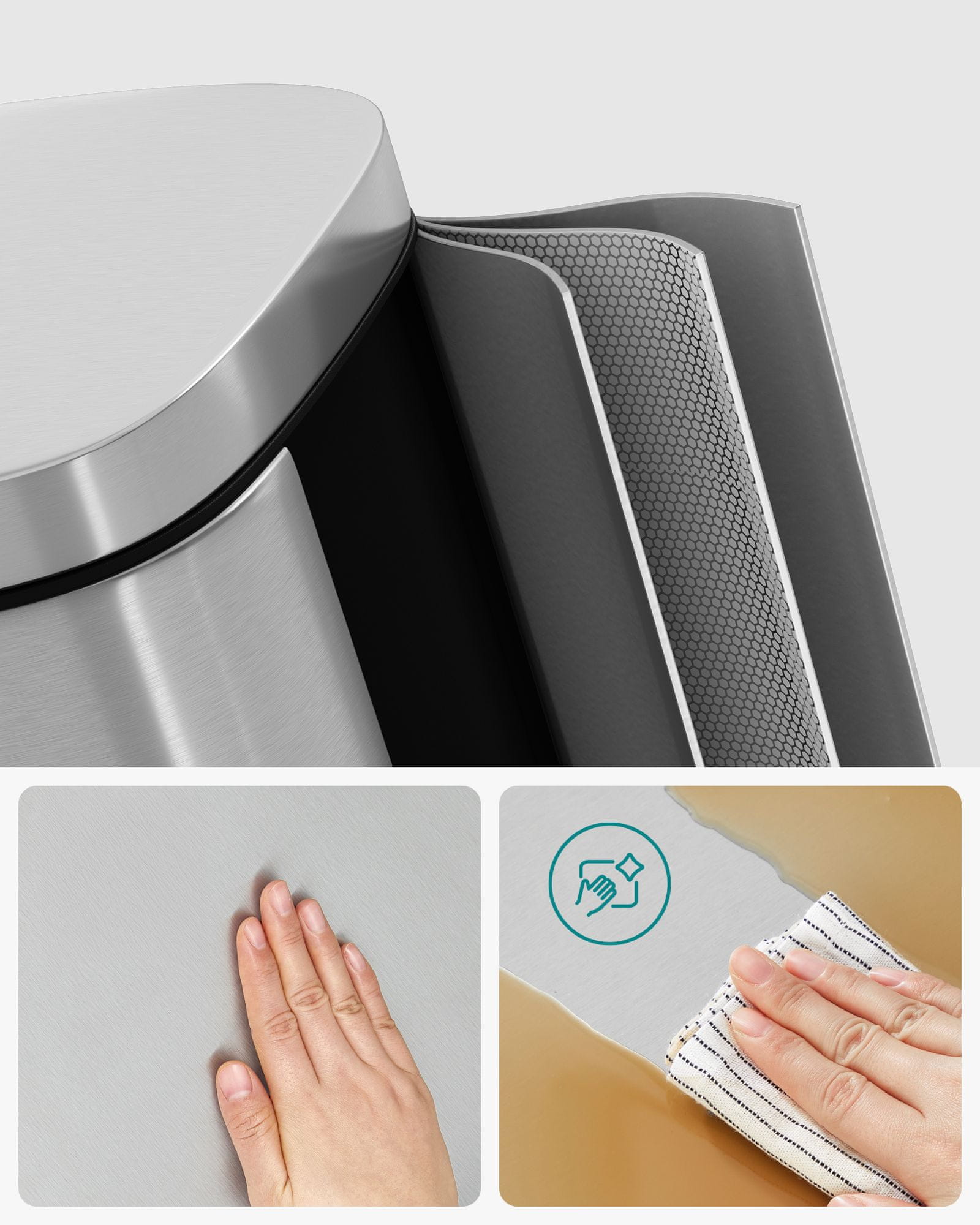 Songmics Kuhinjski koš za smeti 348x297x633 cm srebrna
