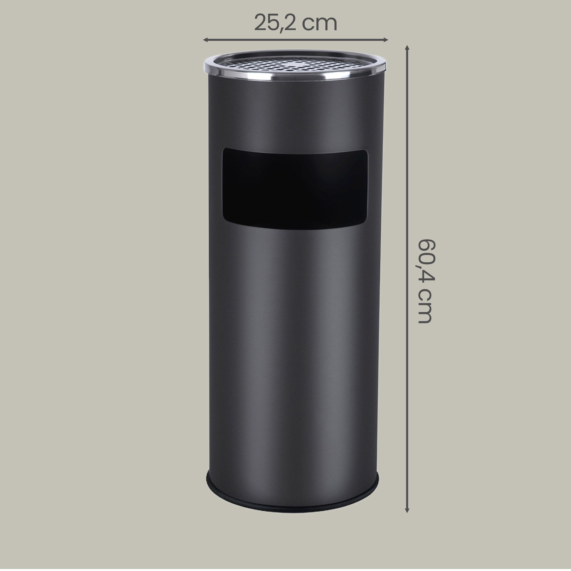 Ta stoječi pepelnik za cigaretne ogorke je zasnovan za ohranjanje čistoče zunanjih in notranjih prostorov, saj nudi namenski prostor za odlaganje cigaret. Njegova elegantna, prostorsko varčna zasnova je primerna za različna okolja, kot so vrtovi, terase, poslovne stavbe in javni prostori. Pepelnik je odstranljiv za samostojno uporabo, trpežni materiali pa omogočajo enostavno čiščenje in dolgo življenjsko dobo.