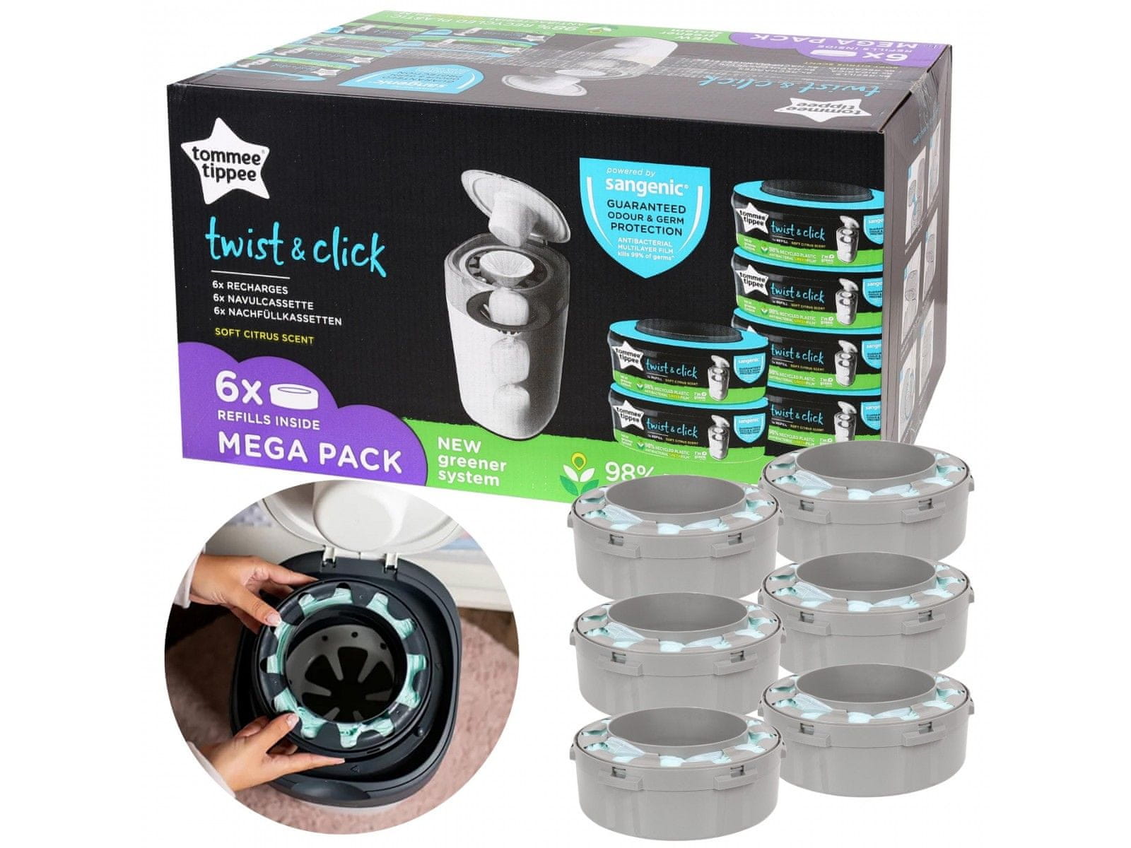 Tommee Tippee Twist & Click komplet 6 polnil je idealna rešitev za koše za plenice za zaščito pred neprijetnim vonjem in bakterijami.