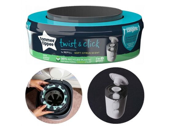 Eno pakiranje Tommee Tippee Twist & Click je idealna rešitev za koše za plenice, ki zagotavlja zaščito pred neprijetnim vonjem in bakterijami.