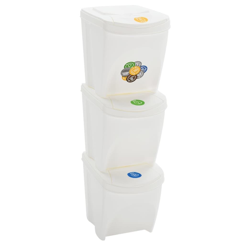 Vidaxl Koš za smeti 3 kosi bele barve 75 L polipropilen