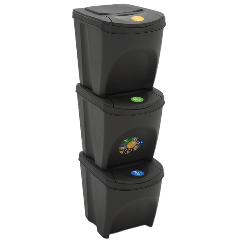 Vidaxl Koš za smeti 3 kosi sive barve 75 L polipropilen
