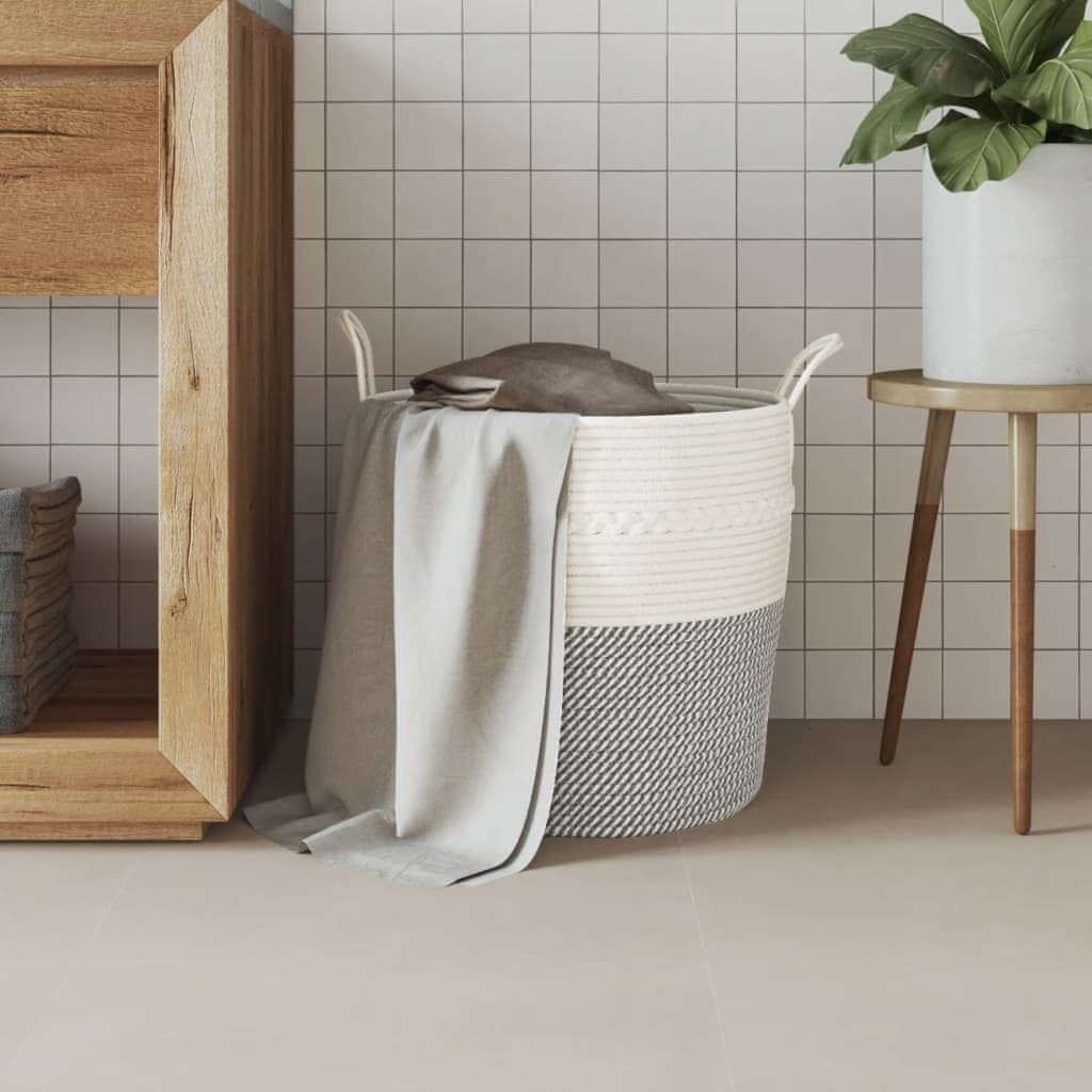 Vidaxl Košara za shranjevanje siva in bela Ø43x38cm bombaž