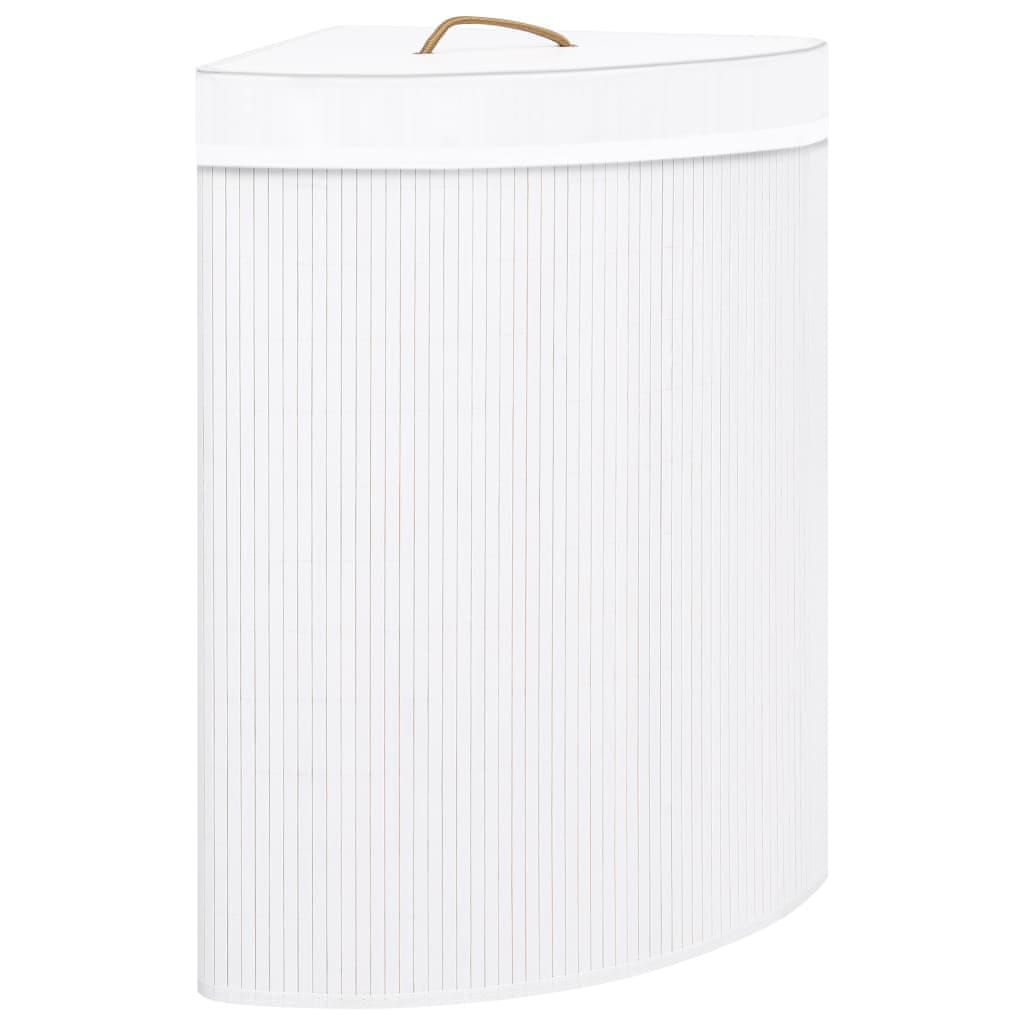 Vidaxl Kotna košara za perilo iz bambusa bela 60 L
