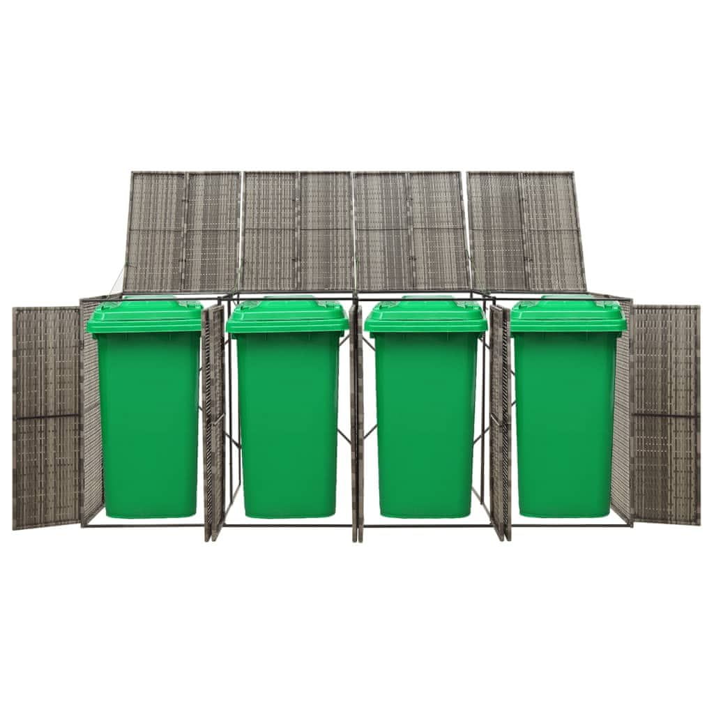 Vidaxl Lopa za štiri smetnjake siva 274x80x117 cm poli ratan