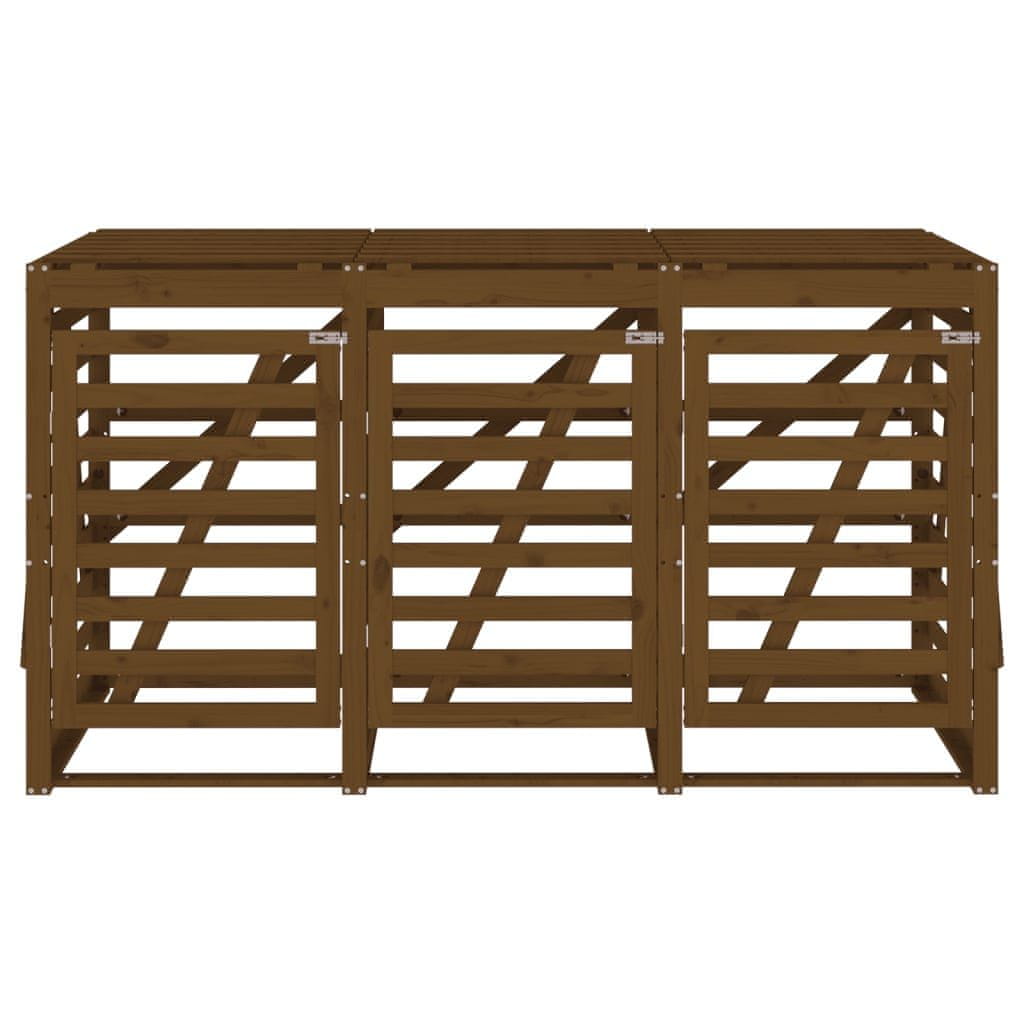 Vidaxl Trojna lopa za smetnjak medeno rjava trdna borovina