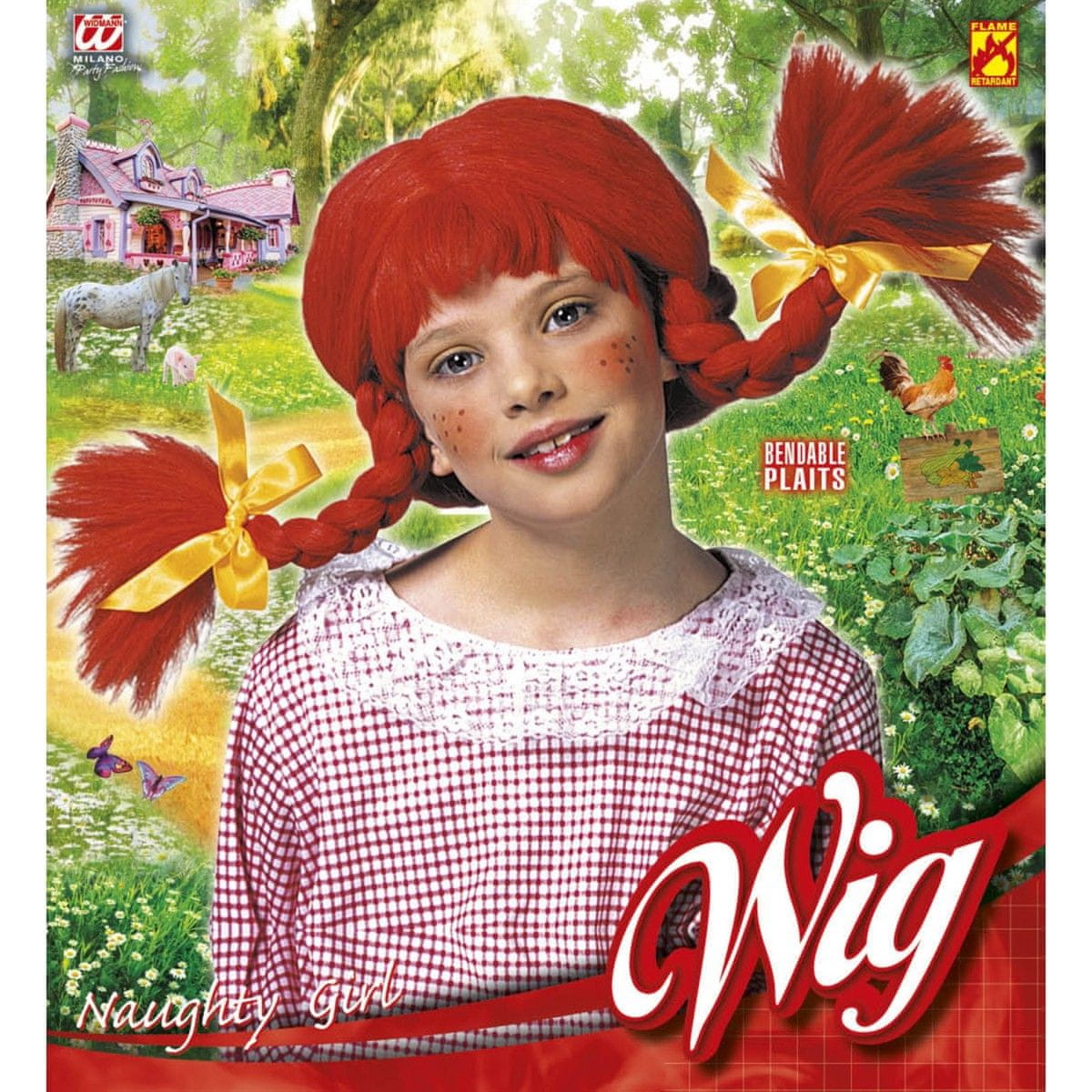 Lasulja za Piko Nogavičko z dvema dolgima kitama, ki sta spetin z rumenima mašnama. Lasulja priznane blagovne znamke Widmann je narejena je iz kvalitetnega materiala. Je udobna za nošenje. Primerna je za uporabo na maškaradi, igri na Pikinem festivalu, otroški zabavi… Celoten opis