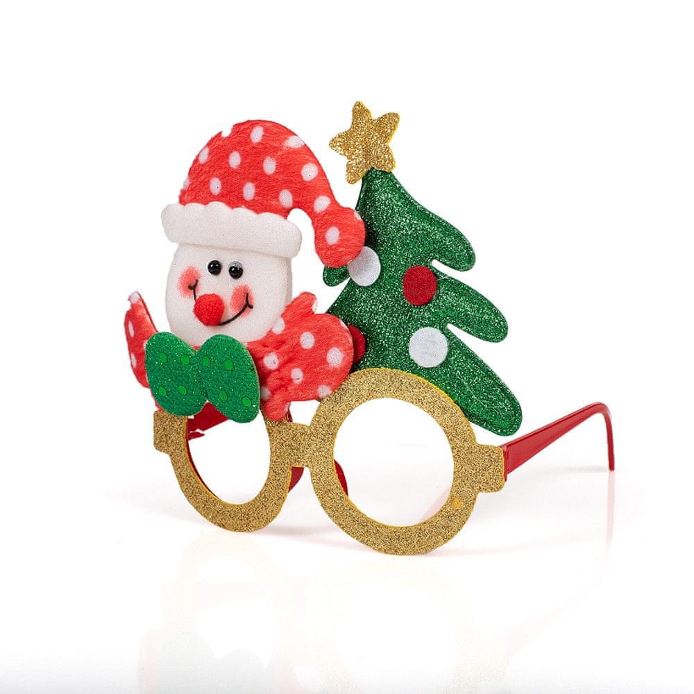 Božična očala z bleščicami in okraski – severni jelen, Božiček, pes in snežak. Celoten opis