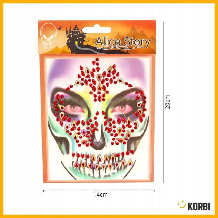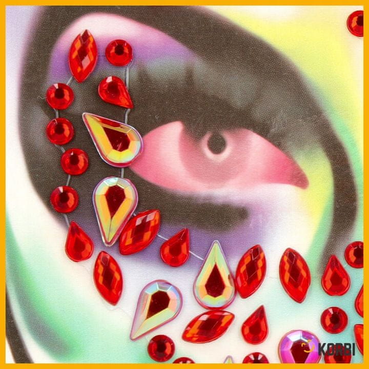 Samolepilne nalepke v obliki rdečih kristalčkov so idealen način za hitro in bleščečo dopolnitev vaše preobleke. Ustvarite sijoč make-up v slogu skull, ki bo pritegnil poglede in vaši stilizaciji dodal izvirnost.