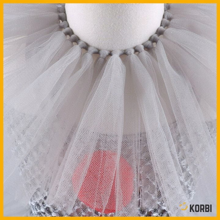 Harlekin kostum je učinkovit in skrbno oblikovan komplet za deklice. Sestavljen je iz treh premišljeno izbranih elementov: tiulaste obleke, belih rokavic in dveh lasnic z rdečimi cofki – skupaj ustvarijo usklajen in pravljičen videz. Osrednji del kostuma je razkošna obleka s tiulasto spodnjo plastjo in elastičnim, zračnim korzetom, okrašenim s tremi velikimi rdečimi cofki. Šivi in večplastni tiul dodajo obleki volumen, mehki zgornji del pa se odlično prilega otroški postavi.