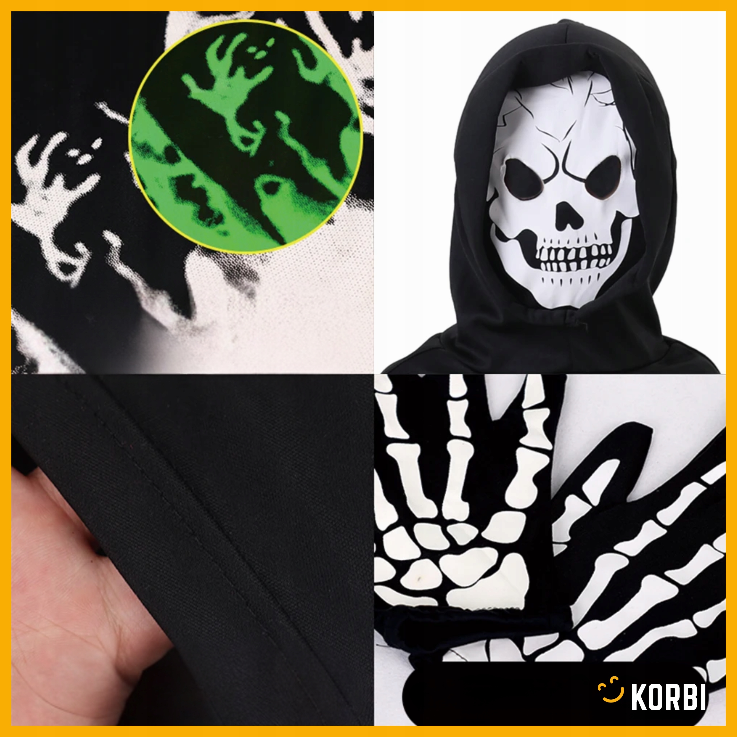 KOSTUM SMRTI – STRAŠLJIVA PREOBLEKA ZOMBIE S KOSO IN ROKAVICAMI, HALLOWEEN, VELIKOST Li