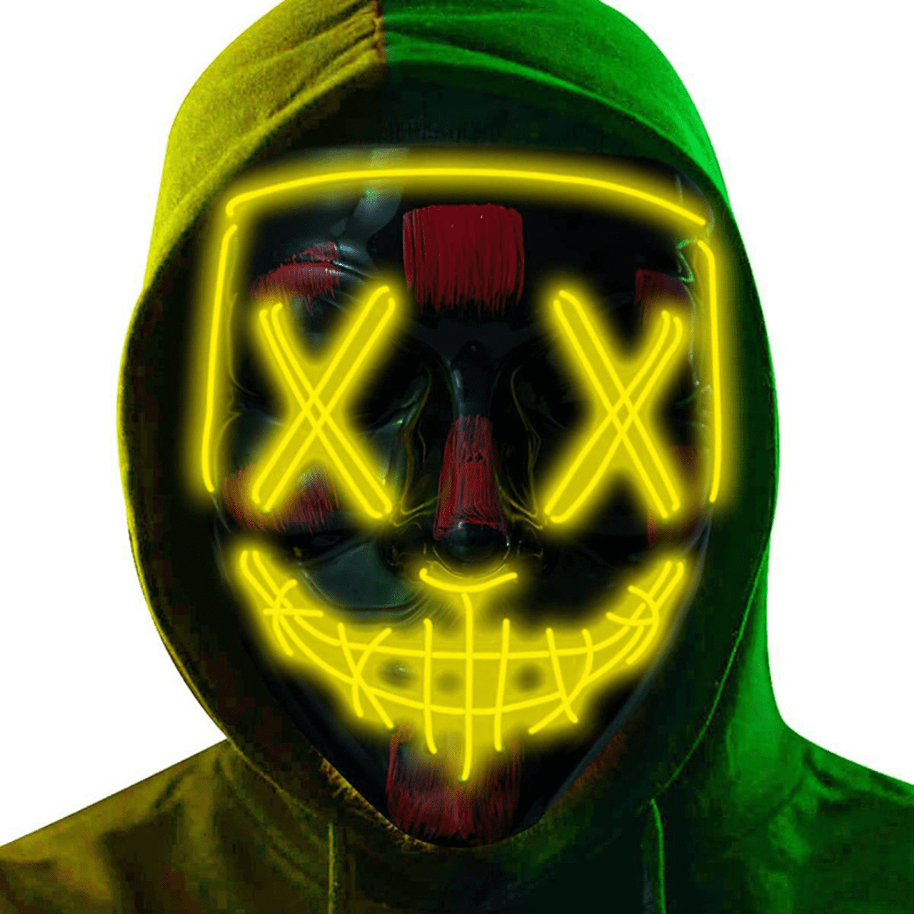 ✅Ponorite se v vzdušje kultne grozljivke "The Purge " in postanite del temačne legende! Ta svetleča maska LED je obvezna oprema za vsako zabavo za noč čarovnic, festival ali nočni dogodek. Z intenzivno svetlobo in prepoznavno obliko boste pritegnili pozornost in svojemu videzu dodali strašljivo vzdušje.