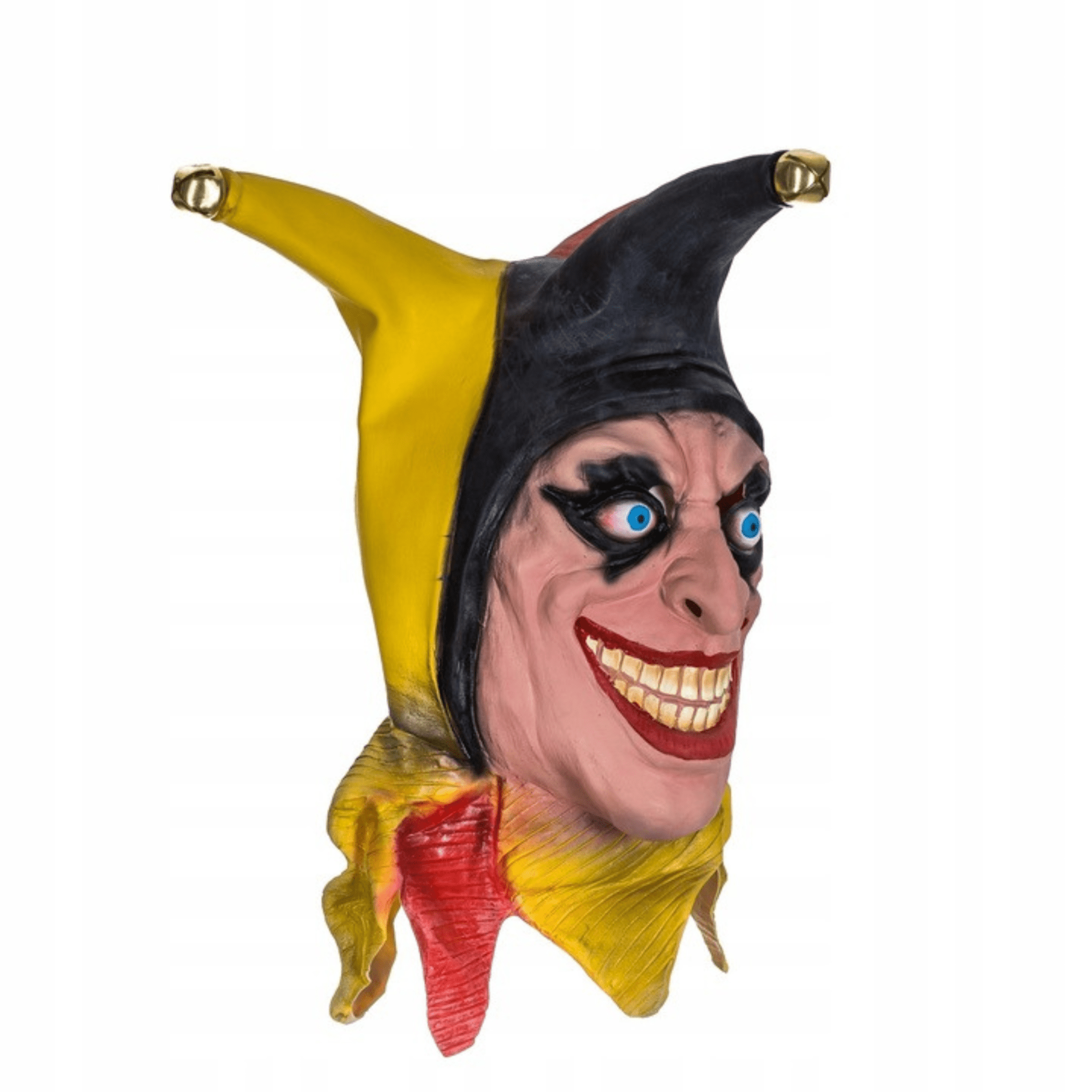 – Realistične podrobnosti: Zaradi rdečega nosu in širokega nasmeha ter priloženih zvoncev in značilne kape, podaljšane do vratu, je maska videti izjemno pristno.