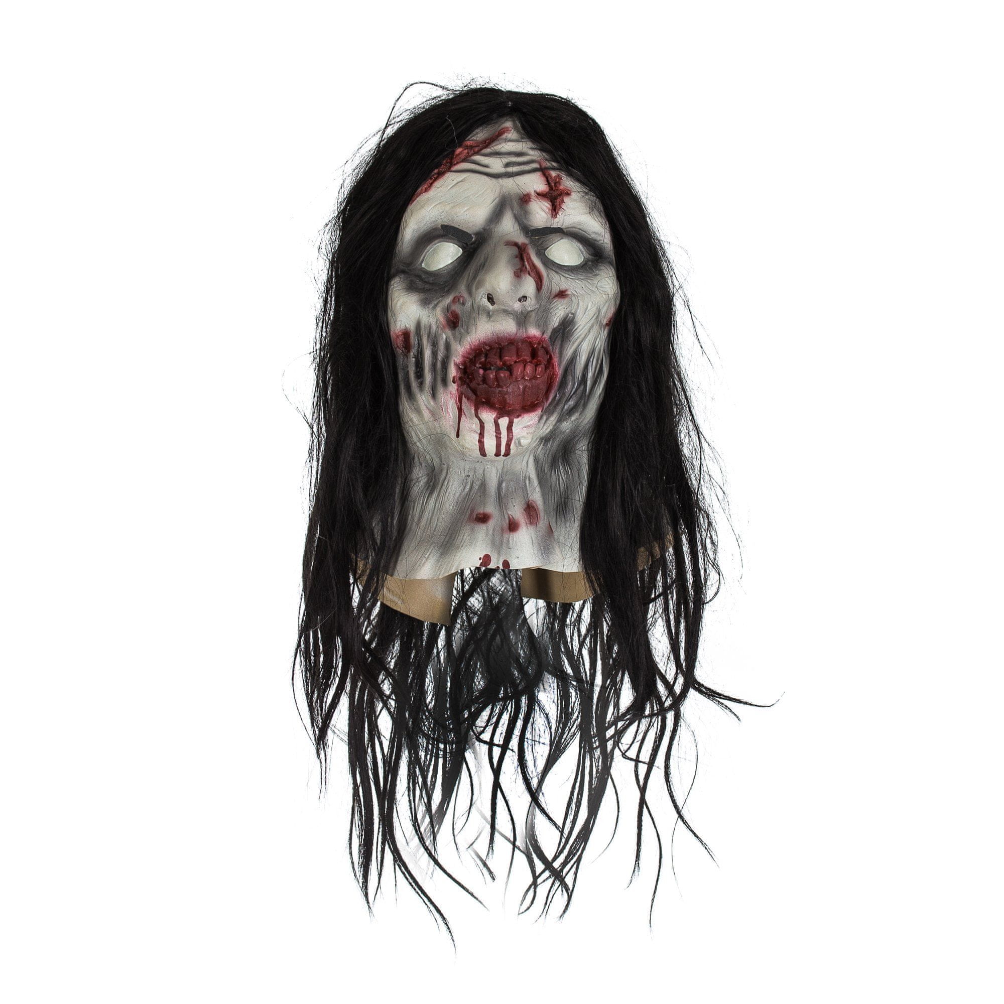 Samara Morgan je lik iz filma „RING“, ki je po vsem svetu znan kot dekle, ki prihaja iz televizije :) Predstavljamo vam masko, ki pokriva celotno glavo in del vratu. Poleg tega ima podaljšan vrat, zato jo lahko potegnete pod srajco in bo videti bolj realistično. Maska ima značilne dolge črne lase.
