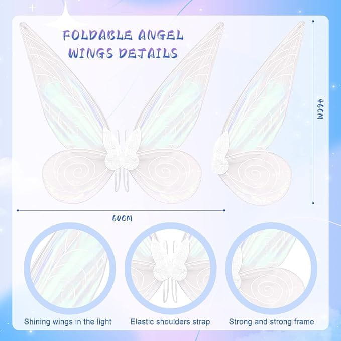 Svetleča vilinska krila predstavljajo popolno kombinacijo lahkotnosti, univerzalnega dizajna in očarljivega svetlobnega učinka. Ta kakovosten pripomoček bo obogatil vsak kostum in poskrbel, da se boste počutili posebno in bleščeče ob vsaki priložnosti. Izberite svoja krila in postanite zvezda zabave s tem unikatnim modnim dodatkom.