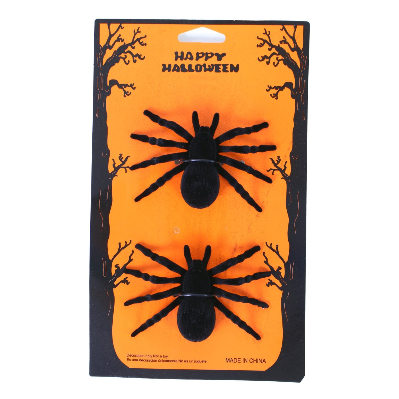 Gumijasti črni pajki, ki so popoln okras za zabavo za noč čarovnic! Paket vsebuje 2 kosa.
