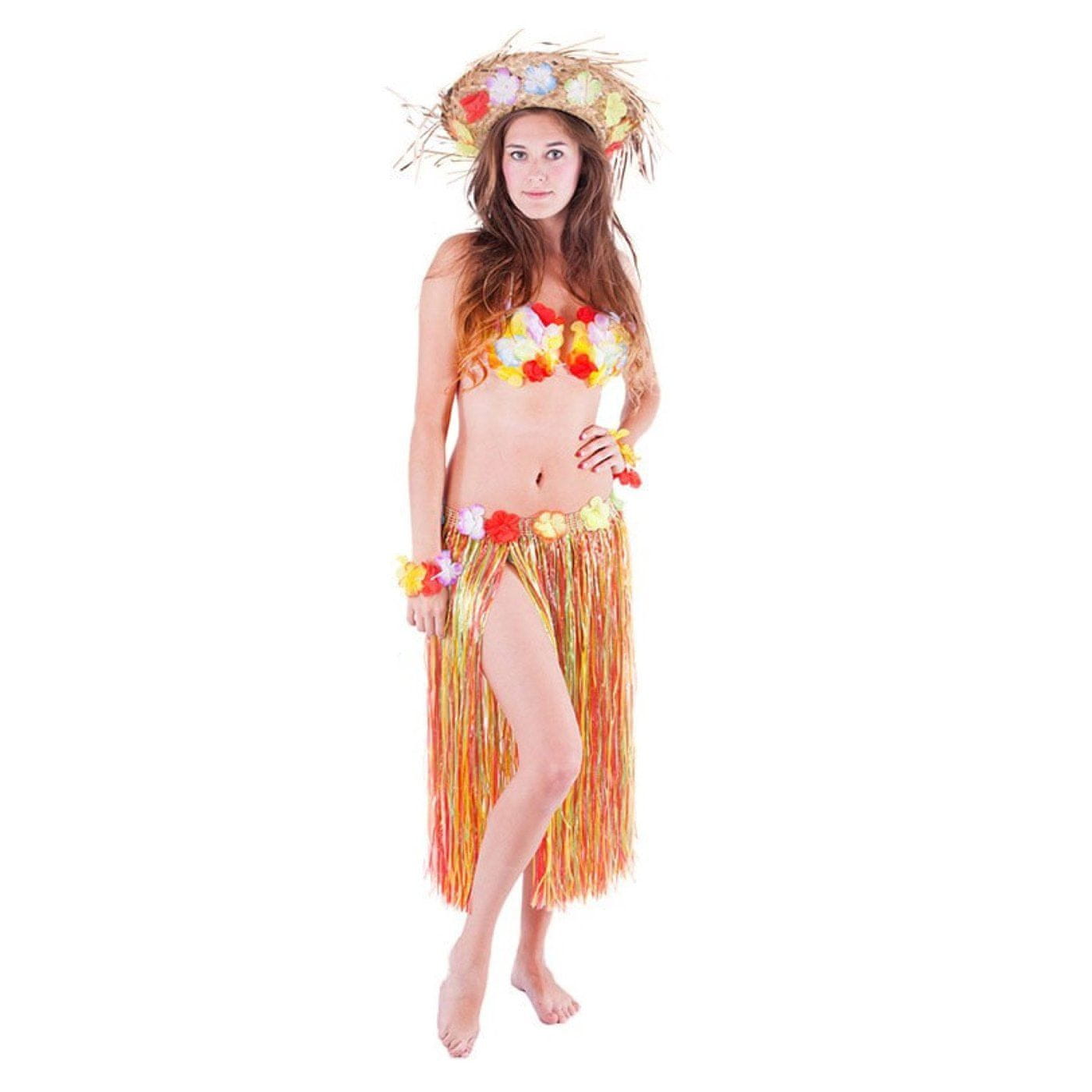 Veliko krilo v slogu „Hawaii“ ne sme manjkati v garderobi nobene dame! Ta senzacionalni kos je popoln dodatek za karneval ali za značilen havajski ples „HULA“. Krilo, dolgo 72 cm, je izdelano iz tankih plastičnih trakov različnih barv in okrašeno s pisanimi cvetnimi lističi. Odlično! Bodite zvezda karnevalske zabave s tem havajskim krilom ali si ustvarite celoten havajski kostum! Paket vsebuje samo krilo.