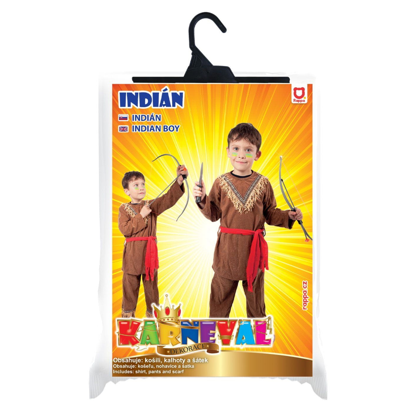 Eleganten karnevalski kostum z indijskim motivom! Rjavi kostum v velikosti S je namenjen dečkom, starim od 4 do 6 let. Paket vsebuje majico z indijanskim vzorcem, hlače in rdeč šal. Oba kosa sta okrašena s čopki. S tem kostumom postani največji frajer na pustni zabavi in navduši vse svoje prijatelje!