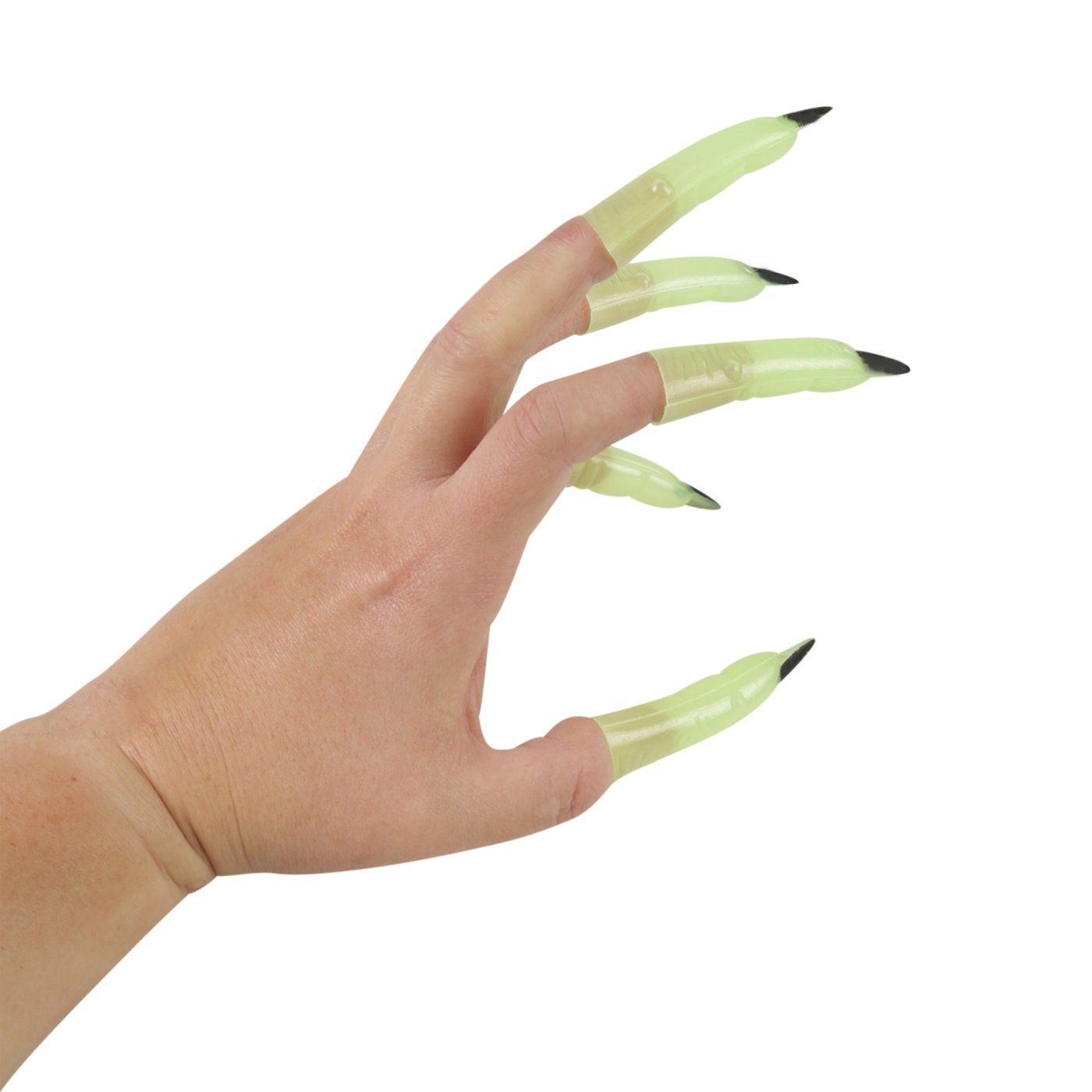 Strašljivi gumijasti prsti so popoln dodatek za prave čarovnice ali za kostum za zabavo za noč čarovnic! V paketu je 10 prstov, ki se svetijo v temi.