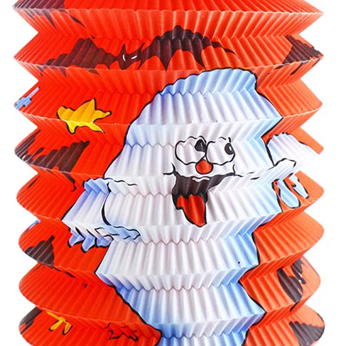 Papirnata svetilka z motivom duha in svetlečo palico! Ovalna svetilka je izdelana iz papirja in ima na dnu ročaj za čajno lučko. Ta kul kos bo zagotovo poskrbel za odlično vzdušje na zabavi za noč čarovnic ali lampijonskem sprevodu! Palica potrebuje 2 svinčnika AA, ki nista priložena. Preklopite stikalo na ročaju, da bo palica zažarela.